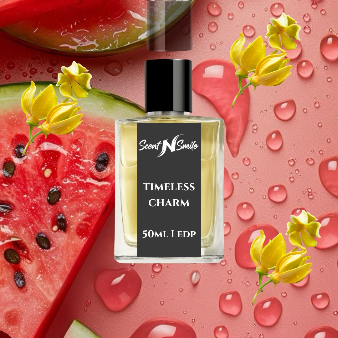 Introducing Timeless Charm, inspired by the classic elegance of J’adore. This fragrance opens with a radiant blend of pear and melon, flowing into a heart of delicate jasmine and rose. Timeless Charm embodies sophistication and grace, crafted for the woman who captivates with her enduring beauty and poise.